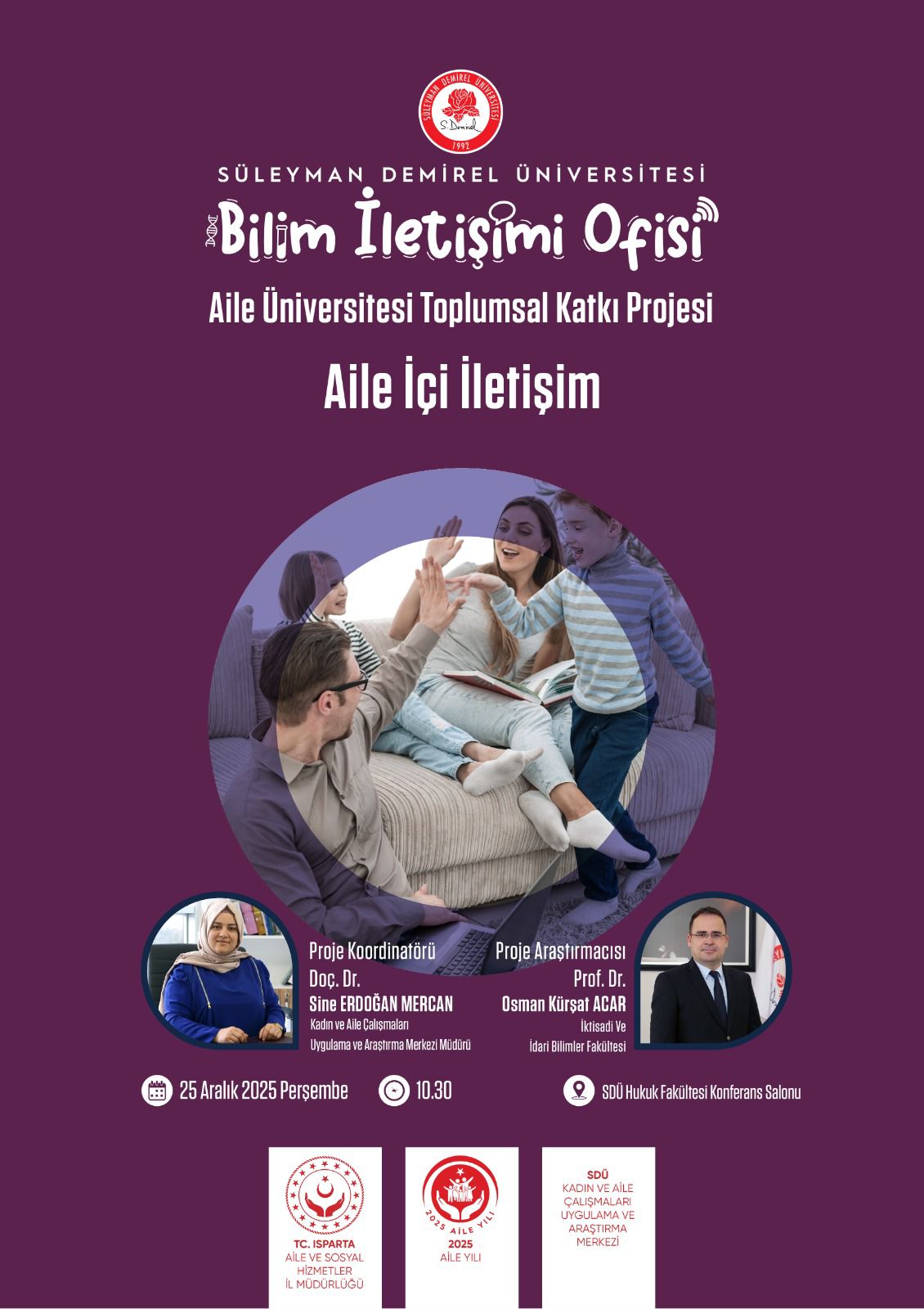 Aile Üniversitesi’nde bu hafta SDÜ Kampüsteyiz. Güne Prof. Dr. Osman Kürşat Acar’ın “Aile İçi İletişim” semineriyle başlayacağız.