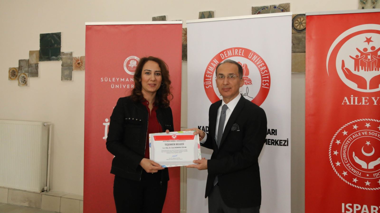 Etkinlikte Aile Üniversitesi Radyo Programına katkı sunan akademisyenlere, Üniversitemiz Rektörü Prof. Dr. Mehmet Saltan, Aile ve Sosyal Hizmetler İl Müdürü Selim Köse ve Isparta Uygulamalı Bilimler Üniversitesi Rektör Yardımcısı Prof. Dr. Ayhan Gösterit tarafından teşekkür belgeleri takdim edildi.