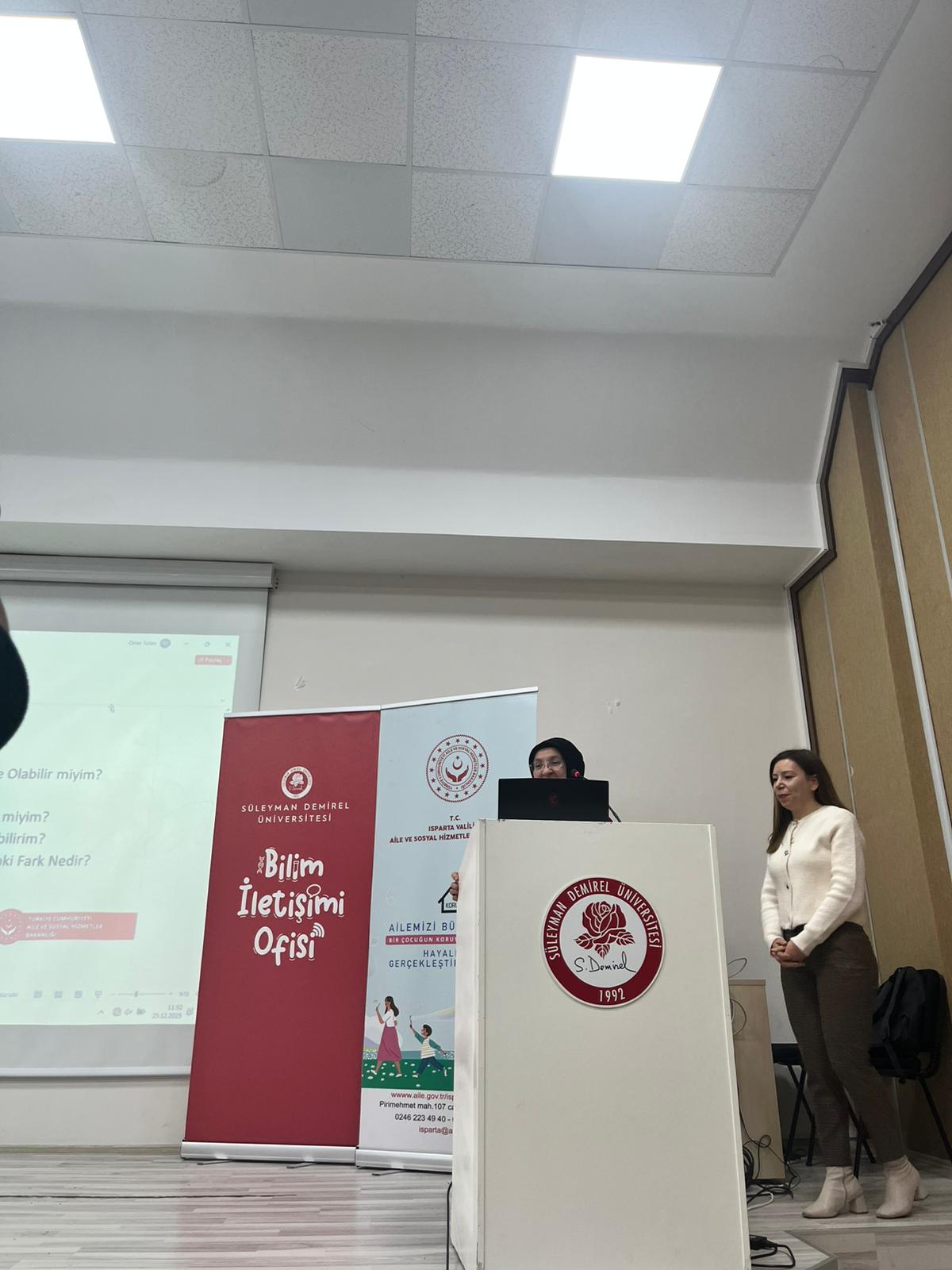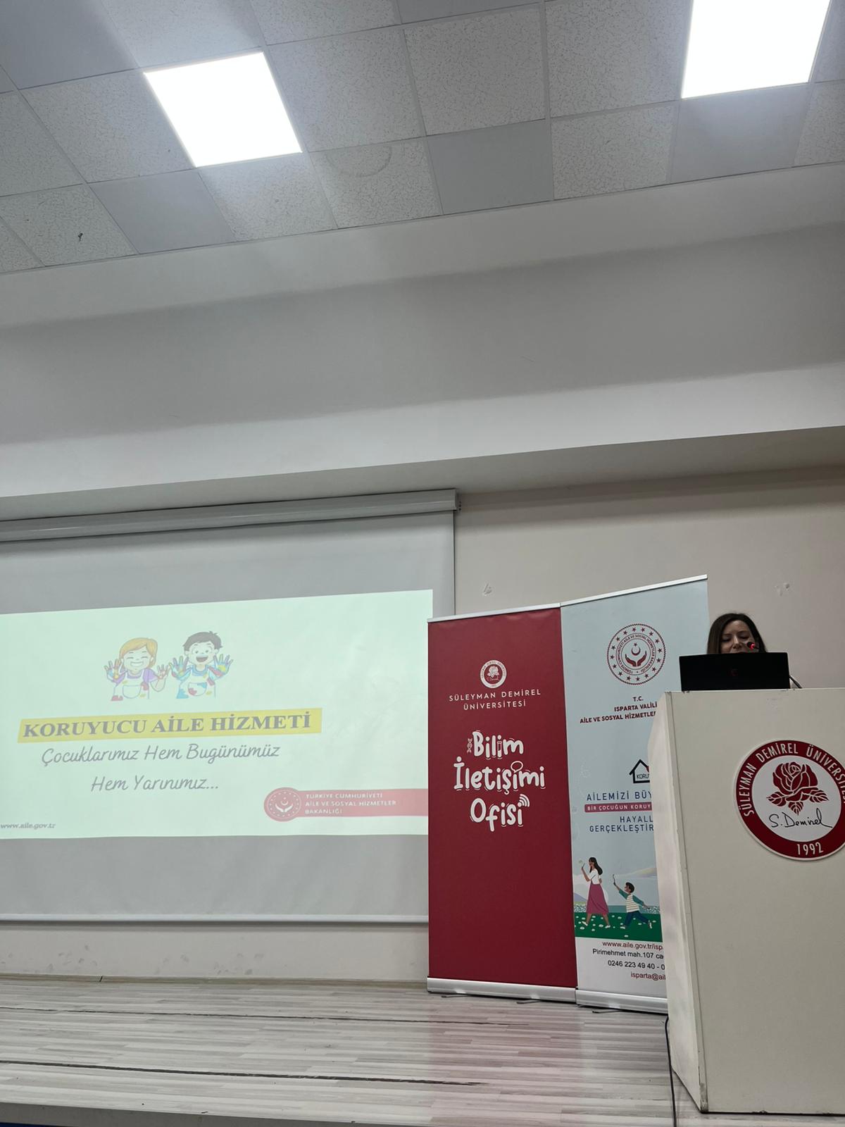 Süleyman Demirel Üniversitesi Kadın ve Aile Çalışmaları Uygulama ve Araştırma Merkezi tarafından yürütülen “Aile Üniversitesi” Toplumsal Katkı Projesi kapsamında, aile yapısını güçlendirmeye yönelik önemli bir seminer düzenlendi. Seminerde, Koruyucu Ailelik Sistemi tüm yönleriyle ele alındı. Koruyucu aile sayısında Türkiye birincisi olan Isparta’nın bu alandaki güçlü deneyimi ve uygulamaları katılımcılarla paylaşıldı. Etkinlikte; koruyucu aileliğin önemi, sistemin işleyişi, başvuru süreci ve çocukların gelişimine sağladığı katkılar hakkında bilgilendirme yapıldı. Seminer, Isparta Aile ve Sosyal Hizmetler İl Müdürlüğü’nde görev yapan Sosyolog Gözde Artık tarafından verildi.