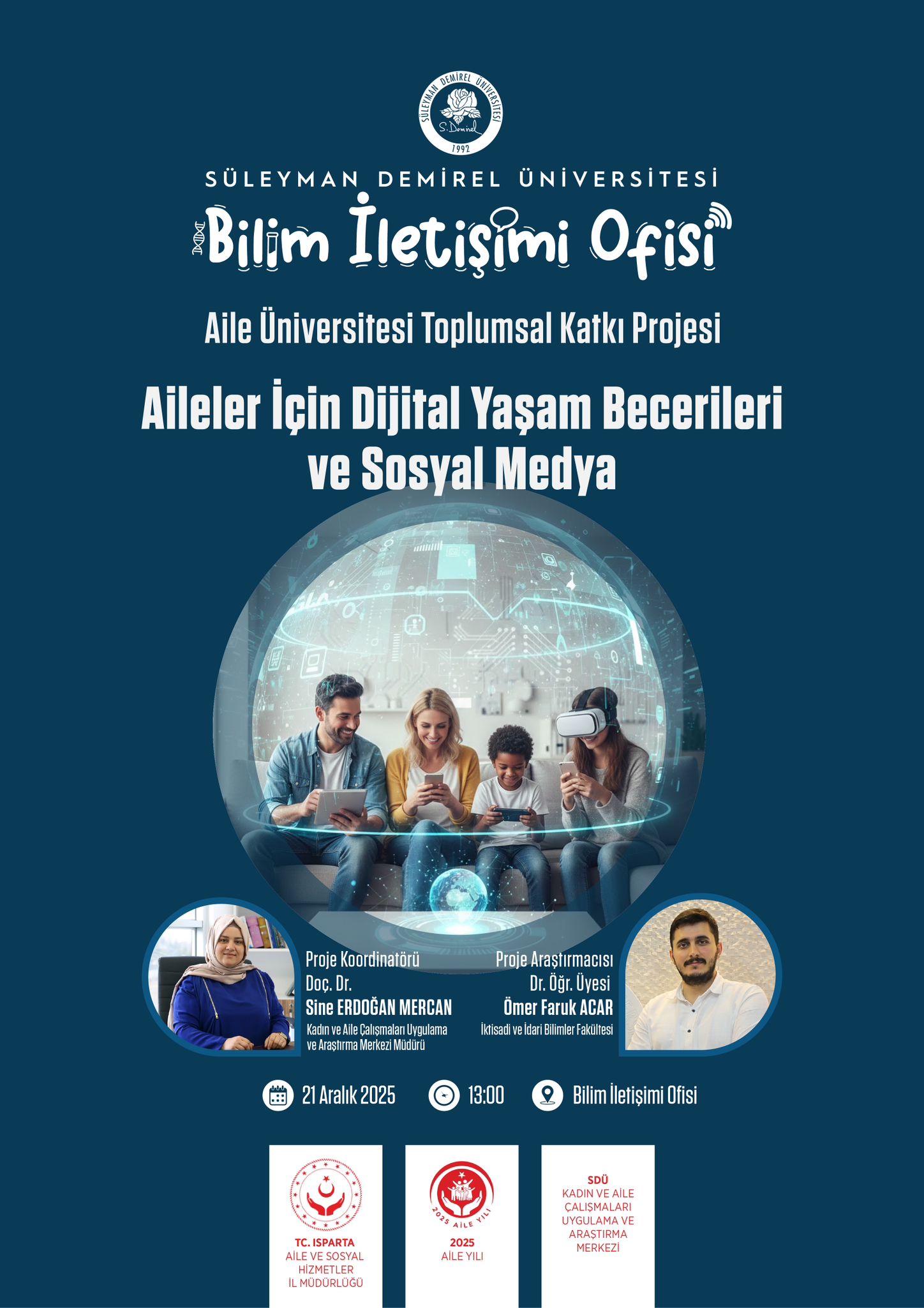 Ailelerin güçlenerek geleceğe hazırlandığı Aile Üniversitesi’nde bu hafta aile içi denge ve güçlü bağlar açısından çok önemli bir konuyu ele alıyoruz. 21 Aralık Pazar saat 13.00'da SDÜ Bilim İletişim Ofisi.