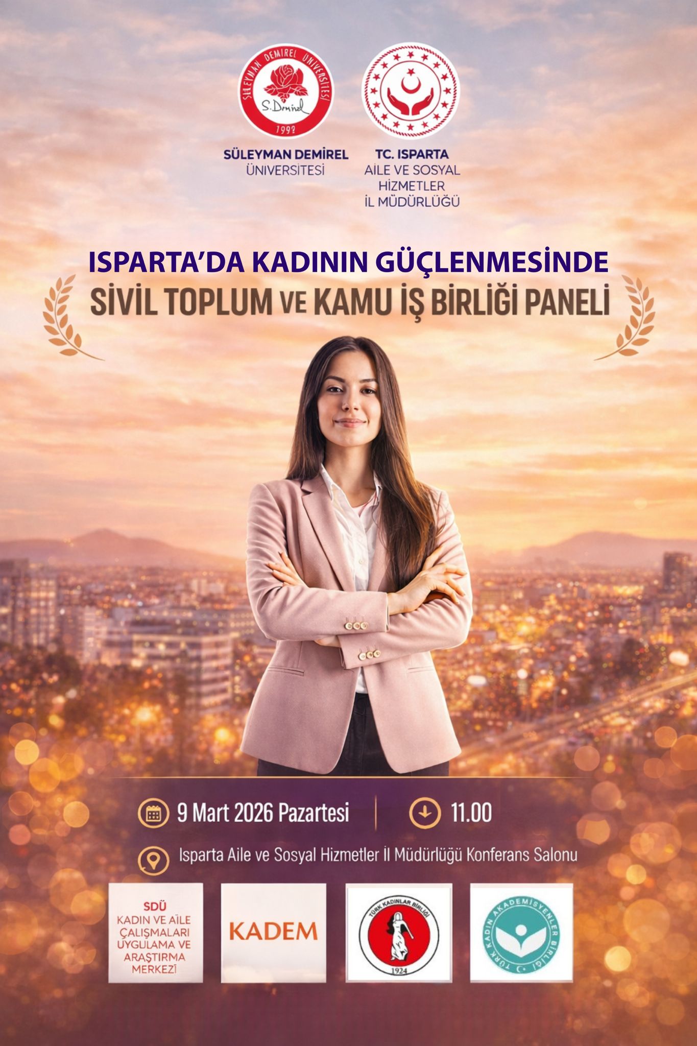 Merkezimiz ve Isparta Aile ve Sosyal Hizmetler İl Müdürlüğü iş birliğiyle ve KADEM, Türk Kadınlar Birliği, Türk Kadın Akademisyenler Derneği katılımıyla düzenlenen 8 Mart Dünya Kadınlar Günü panelimize davetlisiniz!